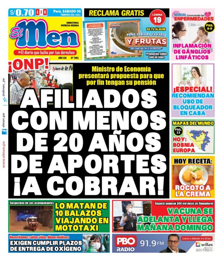 Portada impresa – Diario El Men (06/02/2020)