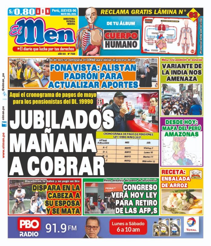 Portada impresa – Diario El Men (06/05/2020)