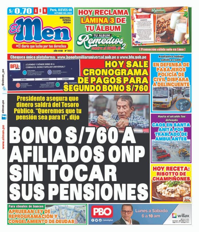 Portada impresa – Diario El Men (08/10/2020)