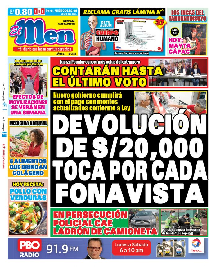 Portada impresa – Diario El Men (09/06/2020)