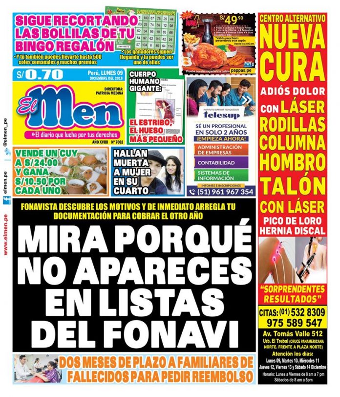 Portada impresa – Diario El Men (09/12/2019)