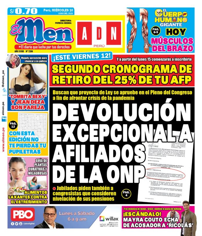 Portada impresa – Diario El Men (10/06/2020)