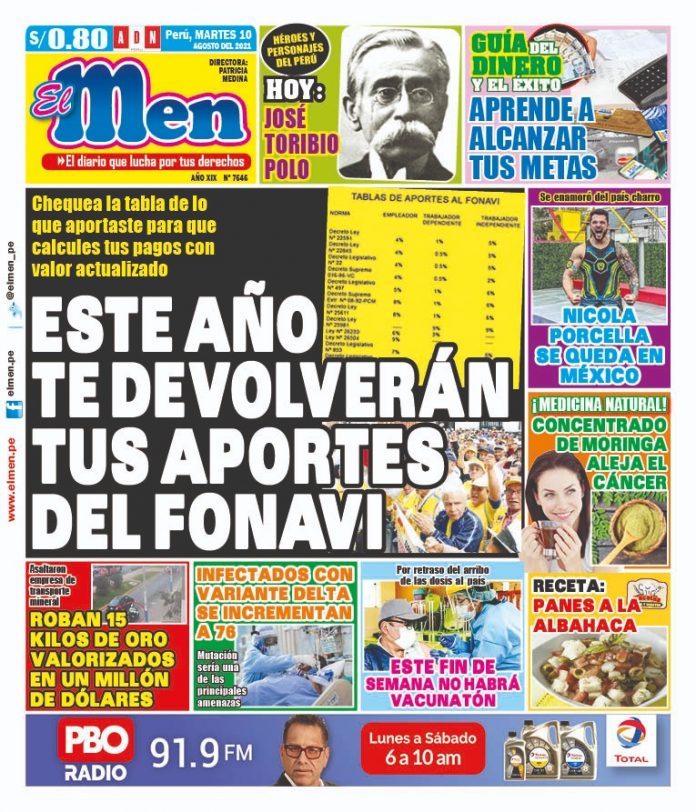 Portada impresa – Diario El Men (10/08/2021)