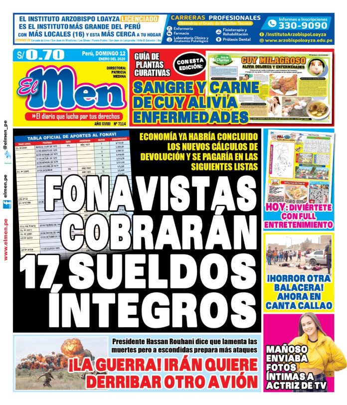 Portada impresa – Diario El Men (12/01/2020)