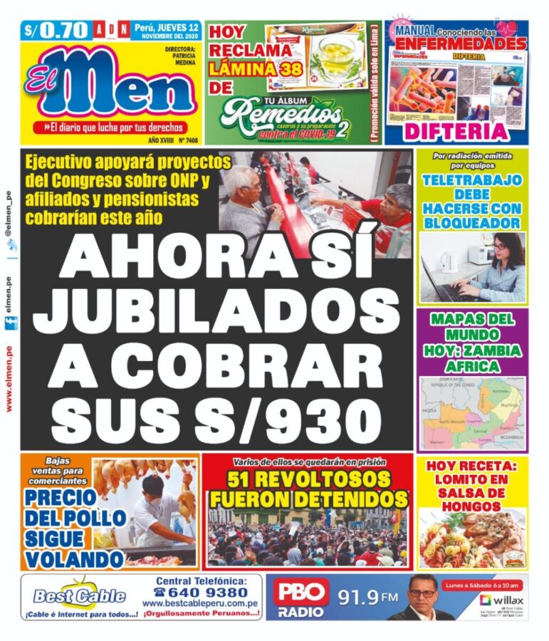 Portada impresa – Diario El Men (12/11/2020)