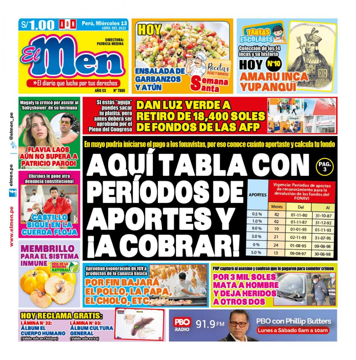 Portada impresa – Diario El Men (13/04/2022)