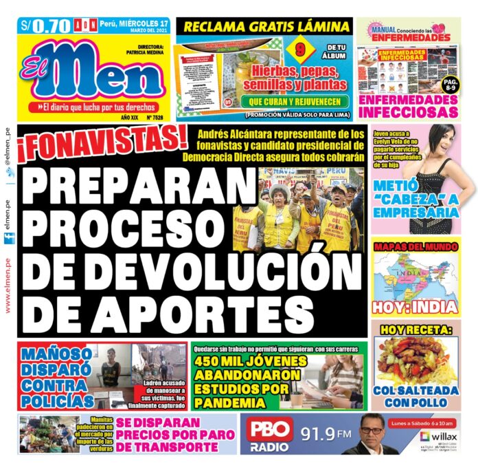 Portada impresa – Diario El Men (17/03/2020)