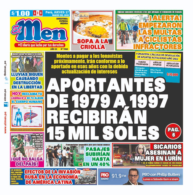Portada impresa – Diario El Men (17/03/2022)