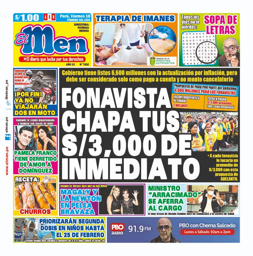 Portada impresa – Diario El Men (18/02/2022)