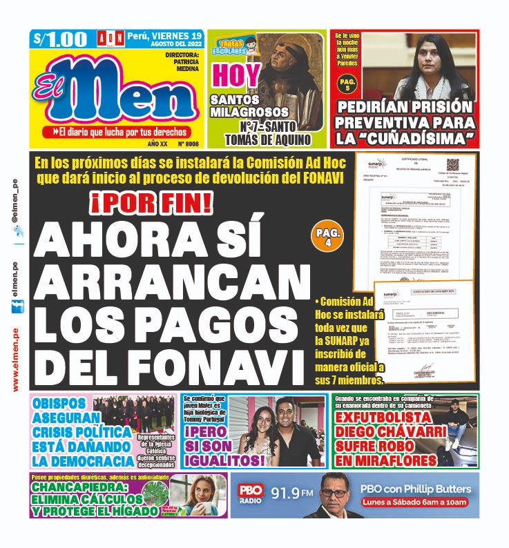Portada impresa – Diario El Men (19/08/2022)
