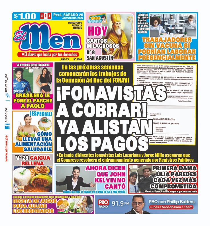 Portada impresa – Diario El Men (20/08/2022)