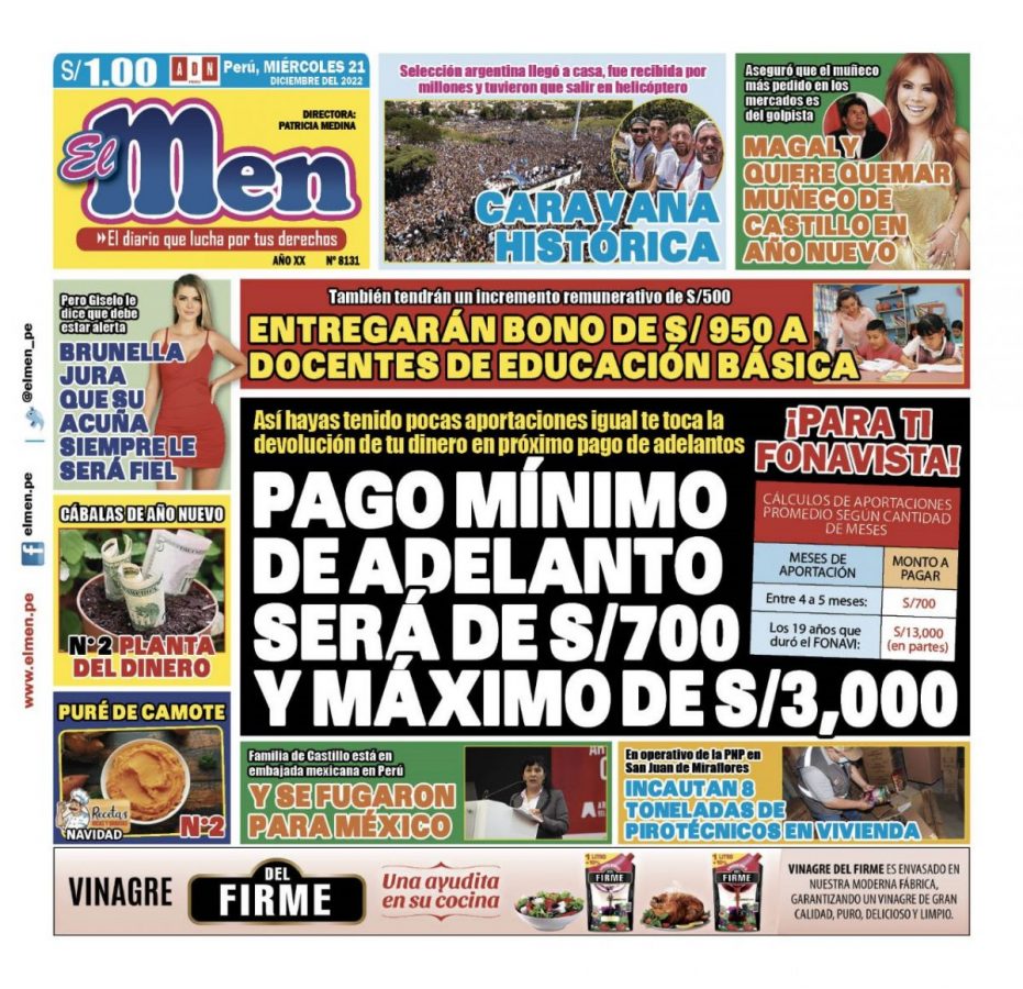 Portada impresa – Diario El Men (21/12/2022)