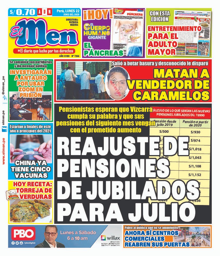 Portada impresa – Diario El Men (22/06/2020)