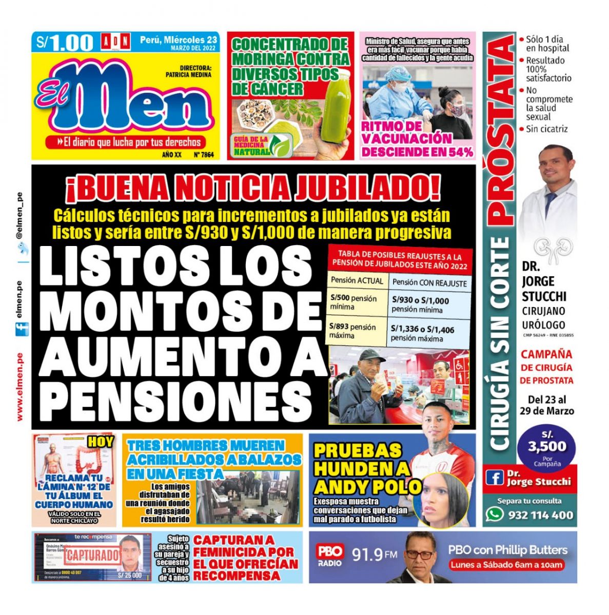 Portada impresa – Diario El Men (23/03/2022)