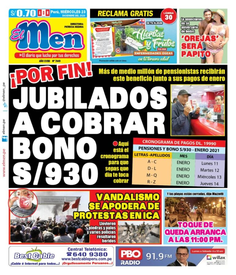 Portada impresa – Diario El Men (23/12/2020)