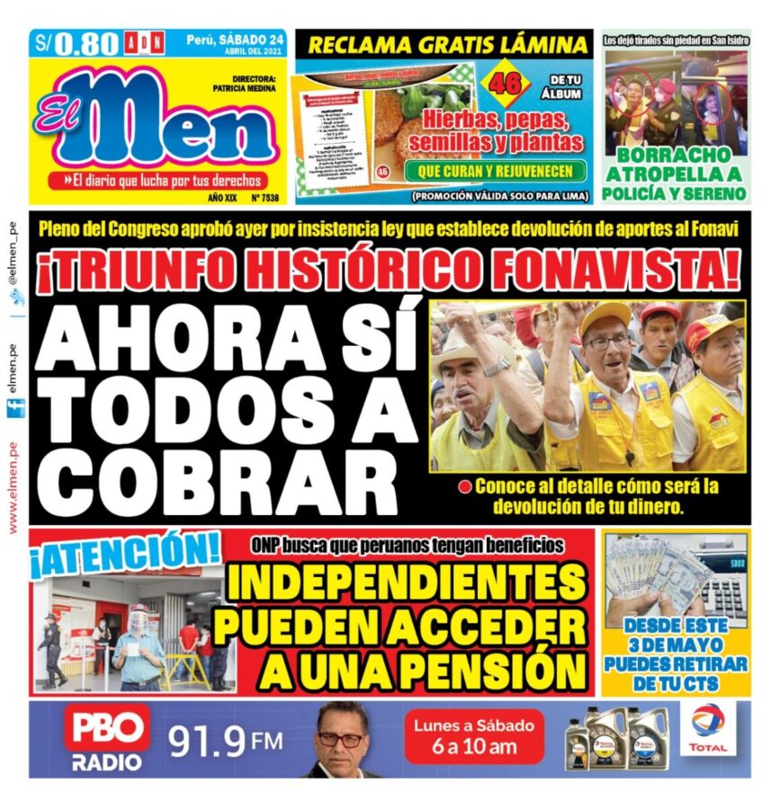 Portada impresa – Diario El Men (24/04/2020)