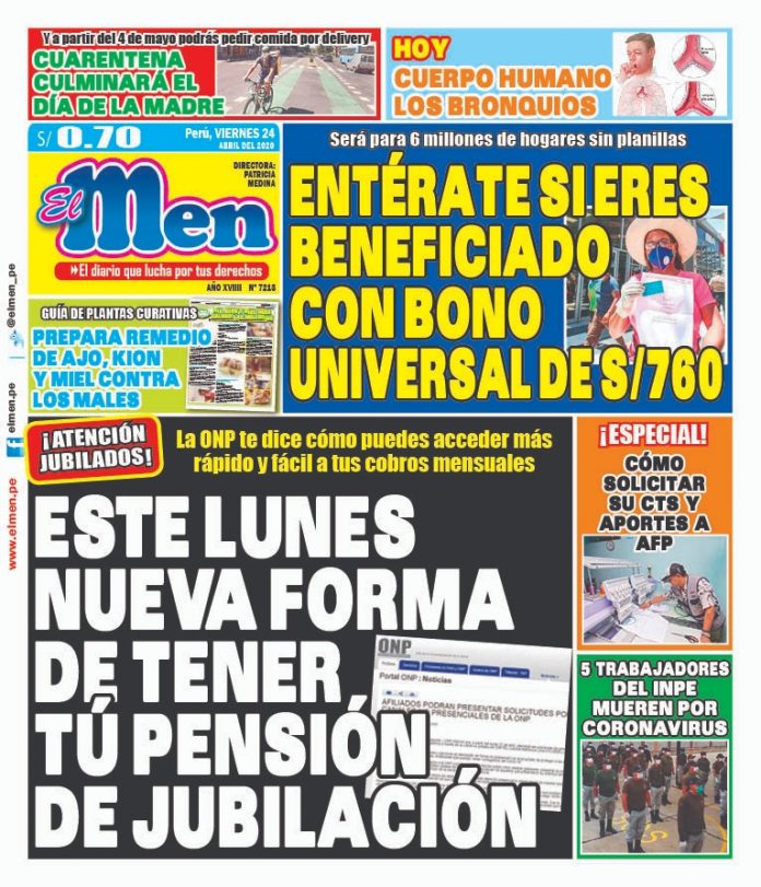 Portada impresa – Diario El Men (24/04/2020)