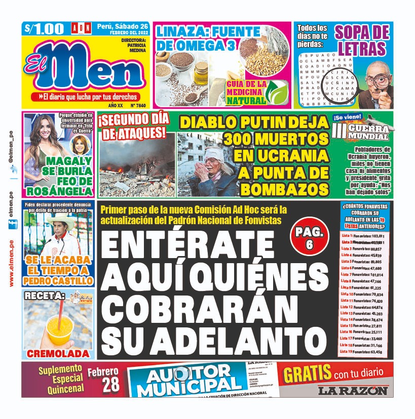 Portada impresa – Diario El Men (26/02/2022)