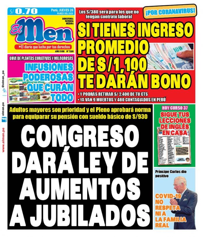 Portada impresa – Diario El Men (26/03/2020)