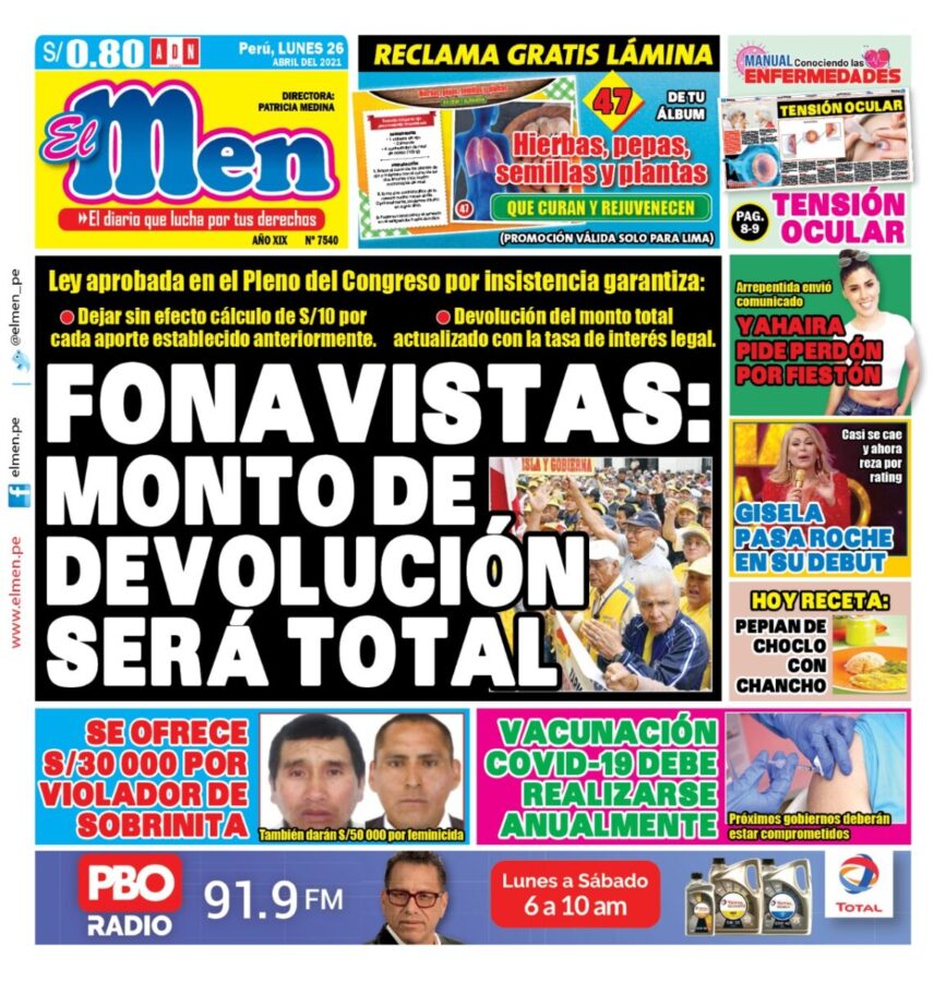 Portada impresa – Diario El Men (26/04/2020)