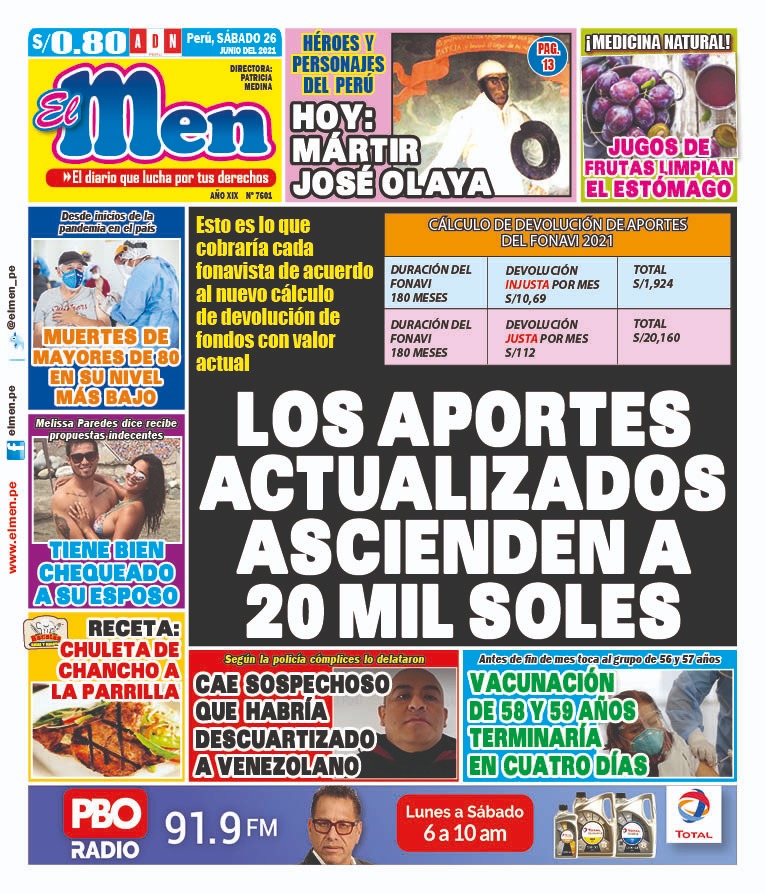Portada impresa – Diario El Men (26/06/2021)