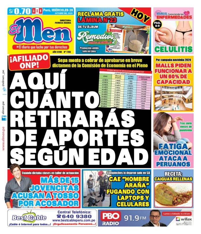 Portada impresa – Diario El Men (28/10/2020)