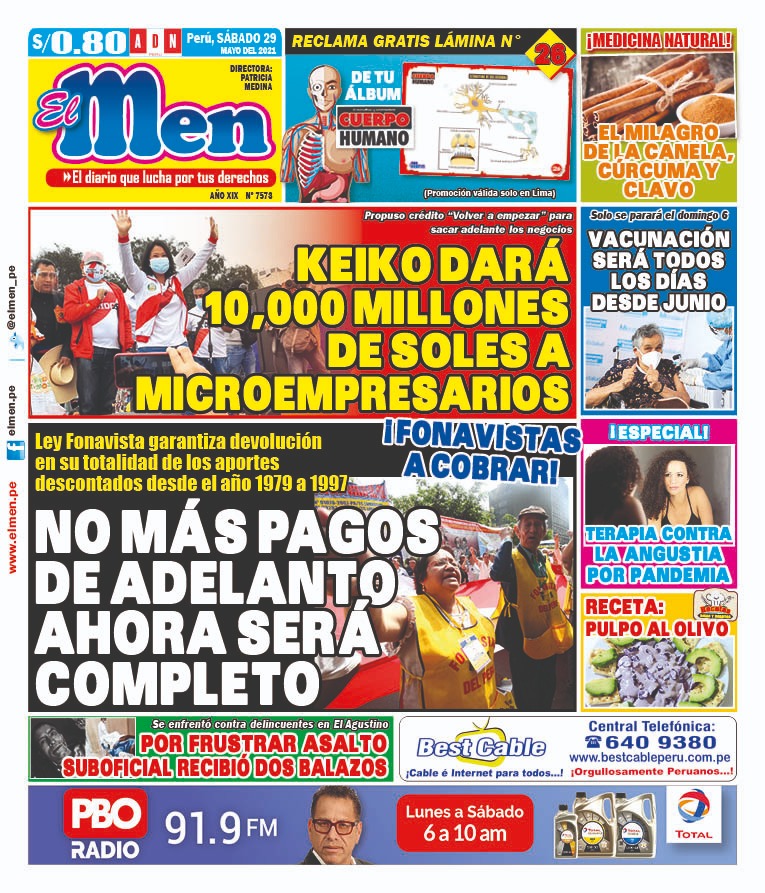 Portada impresa – Diario El Men (29/05/2020)