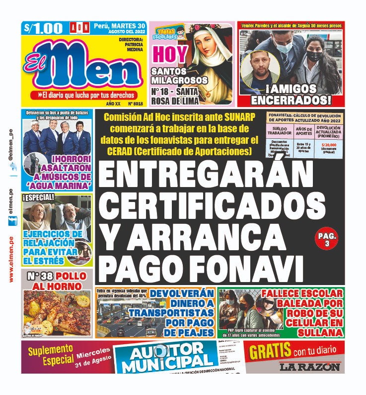 Portada impresa – Diario El Men (30/08/2022)