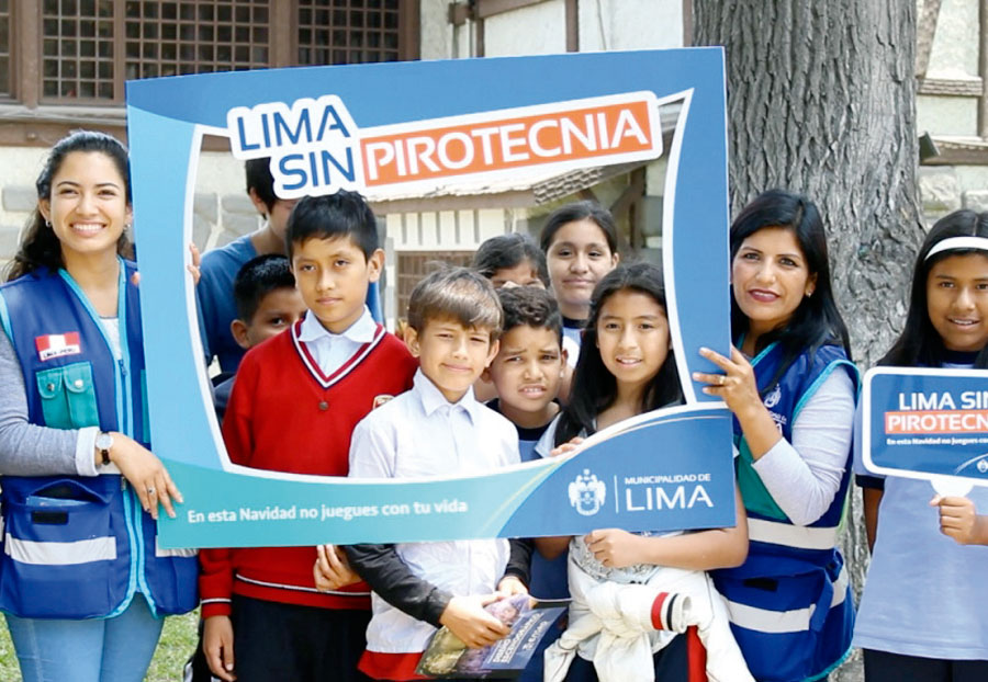 Cientos de escolares y vecinos dijeron no al uso de artefactos pirotécnicos ilegales y detonantes, durante distintas charlas ofrecidas por la Municipalidad de Lima en el marco de su campaña “Lima sin pirotecnia”.