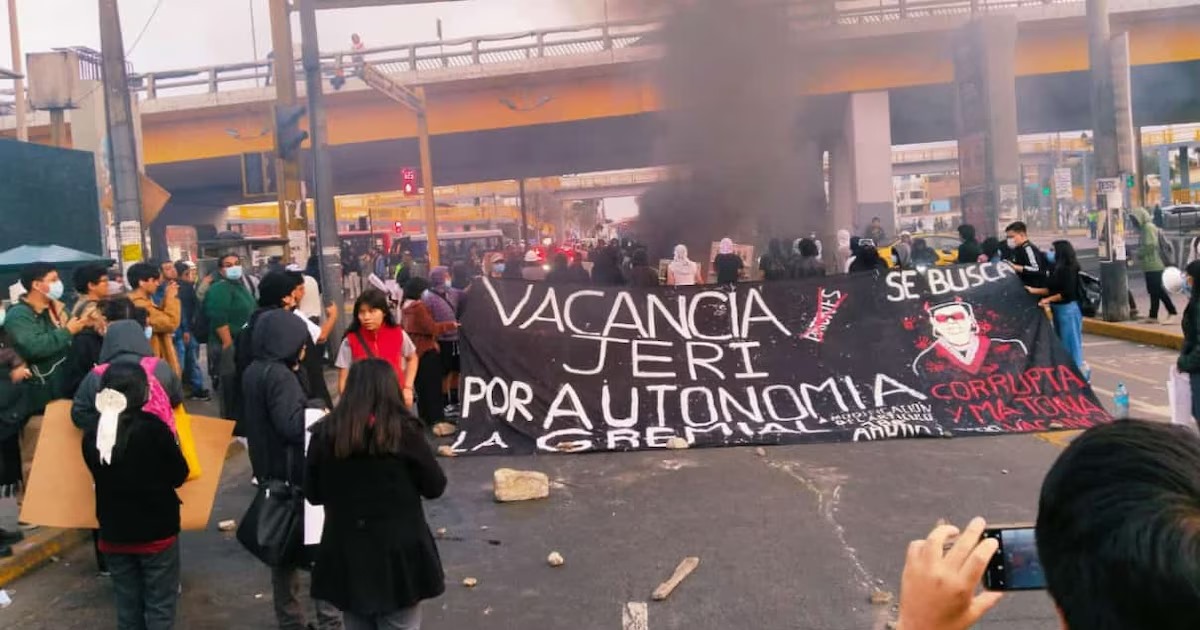 Un grupo de al menos 80 estudiantes de la Universidad Nacional Mayor de San Marcos (UNMSM) salió a las calles ayer, viernes, para protestar contra la gestión de la rectora Jeri Ramón. Los manifestantes bloquearon el cruce de las avenidas Venezuela y Universitaria, generando un caos vehicular durante la tarde y noche, mientras exigían la destitución de la autoridad universitaria.