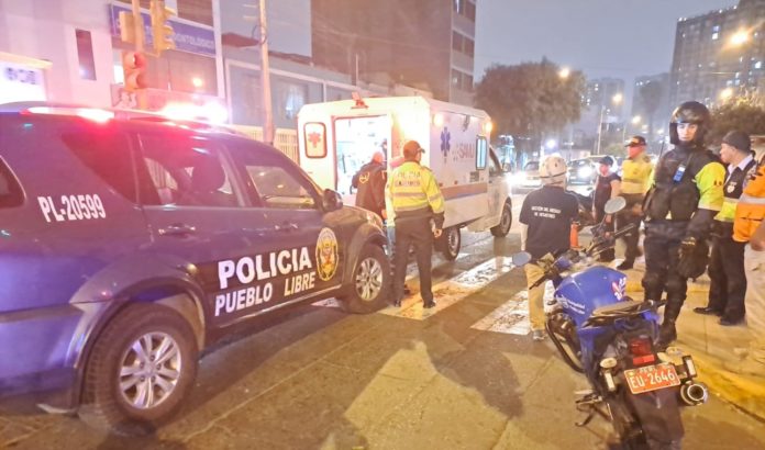 En un rápido acto de respuesta, paramédicos de Rescate Pueblo Libre y del SAMU (Servicio de Atención Móvil de Urgencia) acudieron al cruce de las avenidas Del Río y Colombia en Lima, donde una petona resultó gravemente herida tras ser atropellada por una moto eléctrica, cuyo conductor fue identificado como Jaime Manayay Reyes.