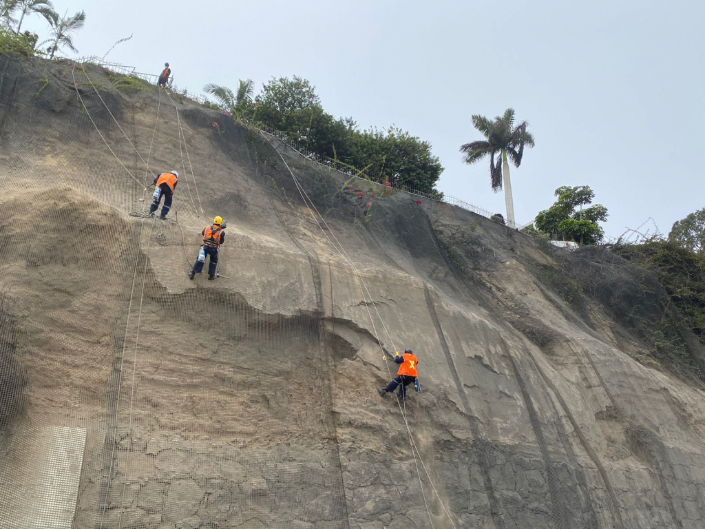Durante la intervención en altura, el personal técnico usará arneses, equipos de protección personal y contará con las medidas de seguridad necesarias para realizar el perfilado manual, a fin de nivelar el acantilado. Estas labores minimizarán el riesgo de nuevos desprendimientos que puedan afectar a las personas y vehículos que transitan por la vía.