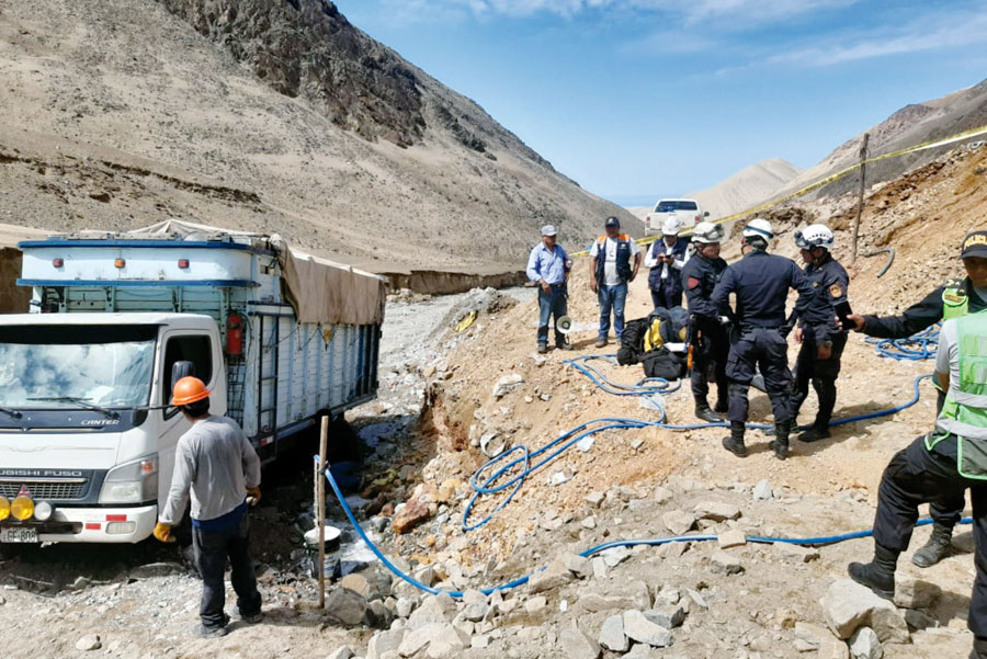 Las labores de rescate al interior de la mina se tornan difíciles por ser el socavón de forma vertical, lo que el acceso se complica y reduce la potencia de los equipos, sostuvo Juan Muñiz, gerente regional de Energía y Minas, que se encuentra en el centro minero Lagunilla. La mina informal se ubica entre el poblado de Tanala y Yauca, en la provincia de Caravelí.