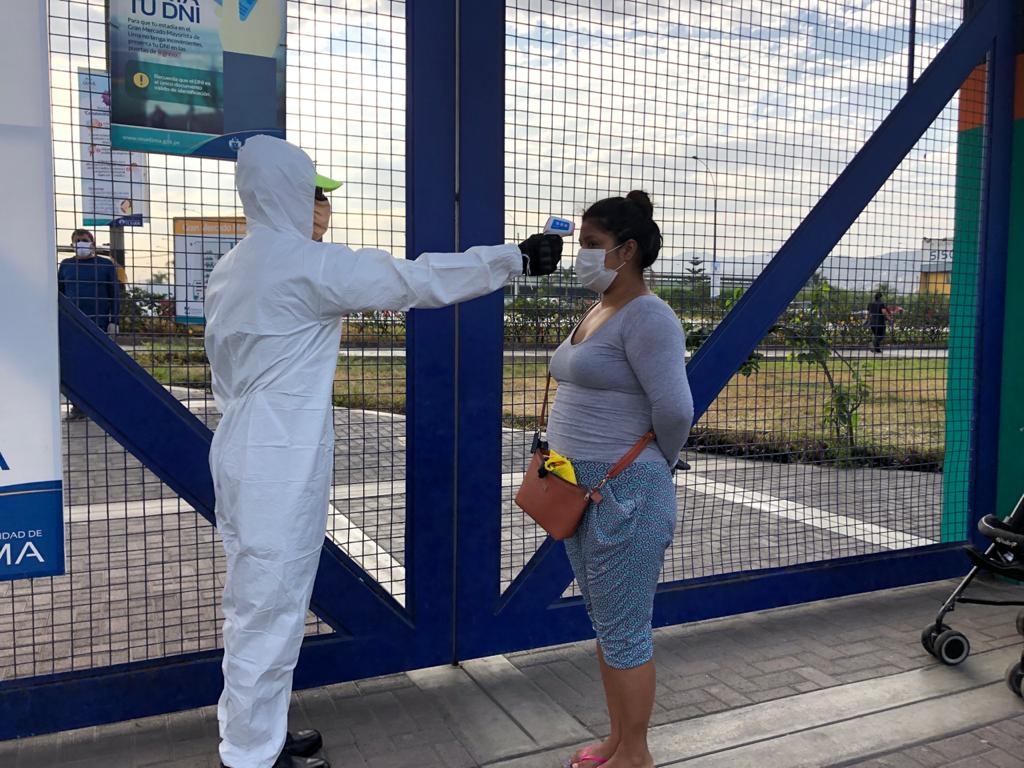 Se toma la temperatura a los clientes en el ingreso al recinto, con la ayuda de diez termómetros infrarrojos y agentes que llevan el equipo de protección personal (EPP), el cual consta de un traje de protección, guantes y mascarilla. Las personas que tengan fiebre no podrán ingresar al GMML.
