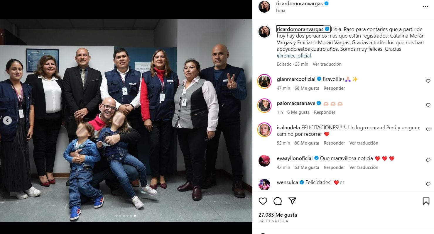 Usuarios como Gian Marco Zignago, Paloma Casanave (Miss Cupcakes), Eva Ayllón y Wendy Sulca se unieron a los primeros en comentar la publicación de Ricardo Morán para felicitarlo por la emocionante noticia.
