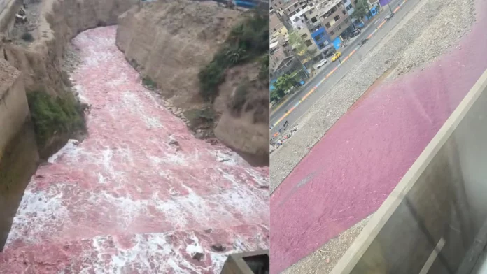 Múltiples reportes en redes sociales han mostrado que el río Rímac en Lima adoptó una inusual tonalidad rojiza, generando preocupación entre vecinos y cibernautas.