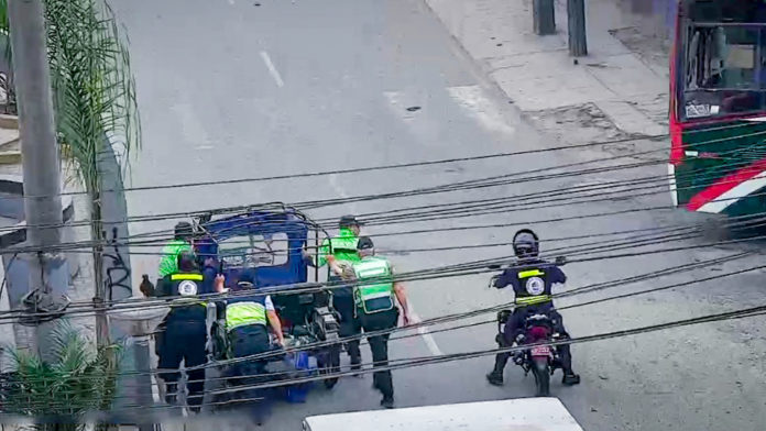 En una acción relámpago, sereno de San Luis motorizado frustra robo de celular y persigue a delincuentes hasta volcar el mototaxi en el Boulevard Yerbateros.