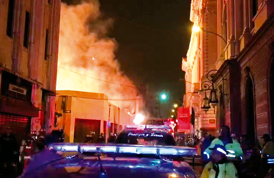 La noche del último sábado, un incendio se registró en al menos cinco locales ubicados en el cruce de los jirones Huallaga y Azángaro, en el Cercado de Lima. Un total de 33 unidades de bomberos, entre motobombas, ambulancias y cisternas, atendieron la emergencia, según el reporte de la página del Cuerpo General de Bomberos Voluntarios del Perú (Cgbvp).