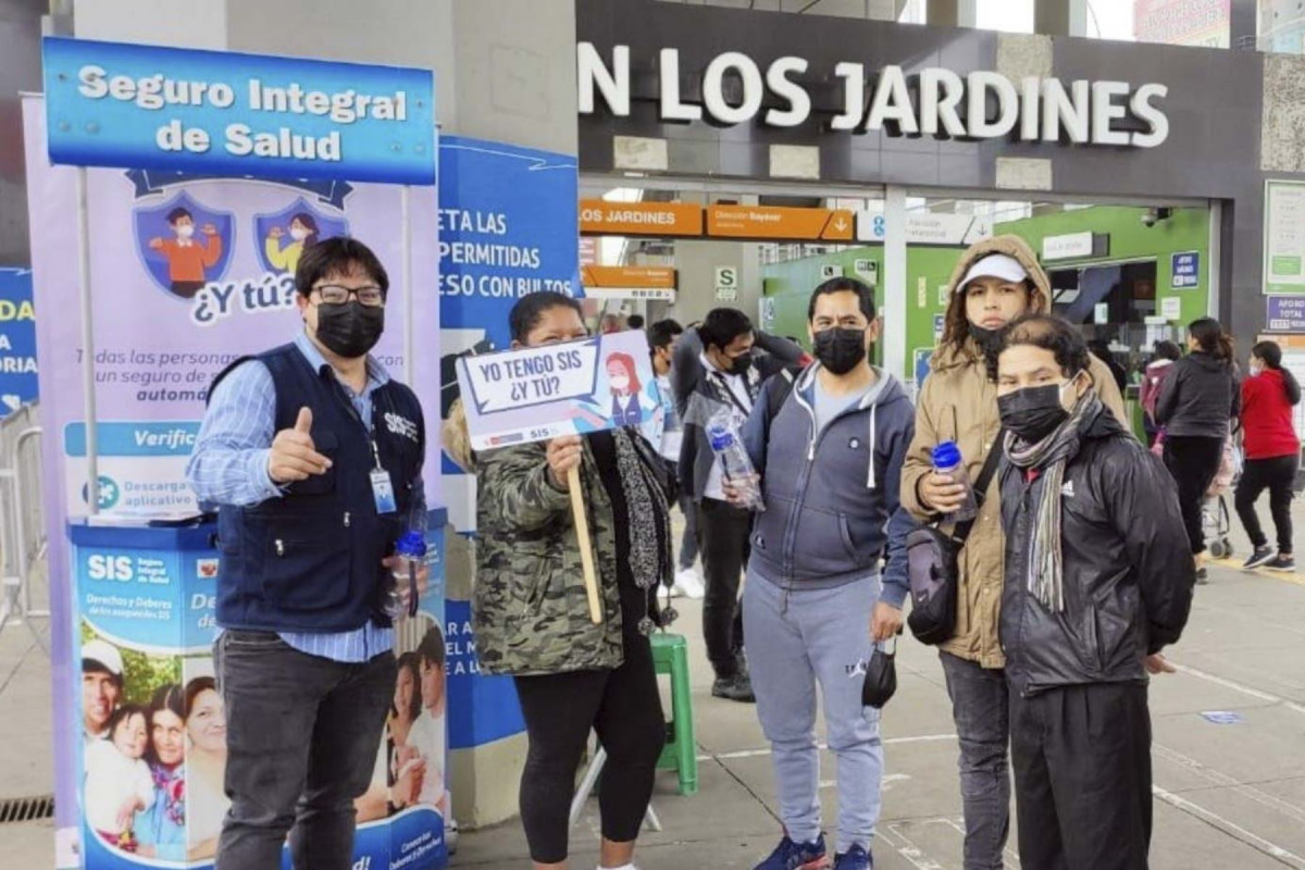 Personal del Seguro Integral de Salud (SIS) visita los paraderos de la Línea 1 del Metro de Lima y del Metropolitano para afiliar a aquellos transeúntes que no tienen un seguro de salud y también para promover que la ciudadanía verifique, a través del APP “SIS: Asegúrate e infórmate”, si es que está asegurada.