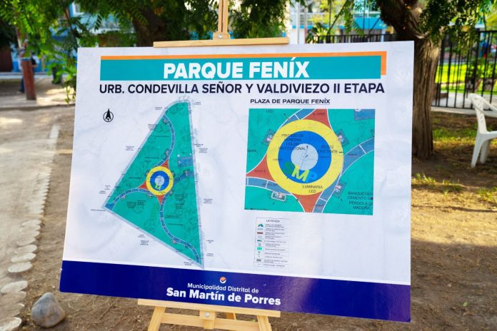 Las obras continúan en San Martín de Porres. El parque Fénix, un lugar prácticamente abandonado por anteriores gestiones a lo largo de 40 años, tendrá un nuevo rostro que servirá para que los vecinos puedan disfrutar de un espacio adecuado para la distracción y el descanso. Se trata de un proyecto que ya dio inicio y que impulsa la gestión del alcalde Hernán Sifuentes, quien colocó la primera piedra de esta obra, una de las más importantes del sector.