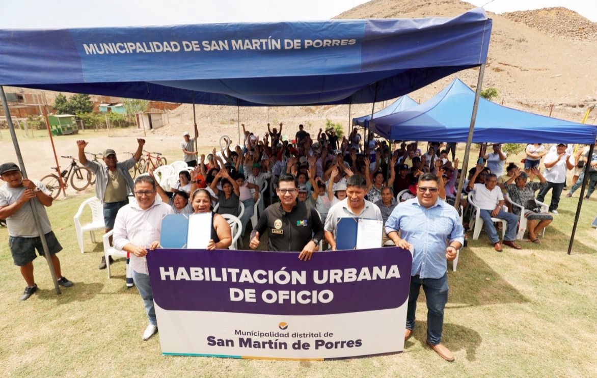 Mejorando la calidad de vida de los vecinos. La Municipalidad de San Martín de Porres realizó la entrega de nuevas habilitaciones urbanas de oficio para los pobladores del sector de Chuquitanta. Un total de 151 familias de las urbanizaciones Tayacaja y Uranio III Etapa consiguieron el anhelado sueño de tener este importante documento que les permitirá gestionar su titulación y demás servicios y beneficios para su localidad.