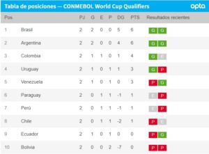 Los partidos de las Eliminatorias Sudamericanas 2026 concluyó el martes 12 de septiembre, con Brasil y Argentina liderando la clasificación general con pleno de puntos. Ambos anotaron en ambos juegos con un doblete inicial.