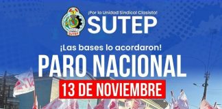 Sutep anuncia paro nacional el 13 de noviembre