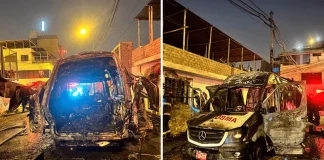 VMT: ambulancia se incendia tras explosión de balón de oxígeno